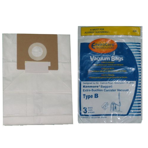 3 Kenmore Type B Vacuum Cleaner Allergen Extra-Suction Canister Vacuum Cleaner Bags, Galaxy Series, 85003, 634875, 24196, 20-24196, 0-24196, 115.2496210, 02053278000