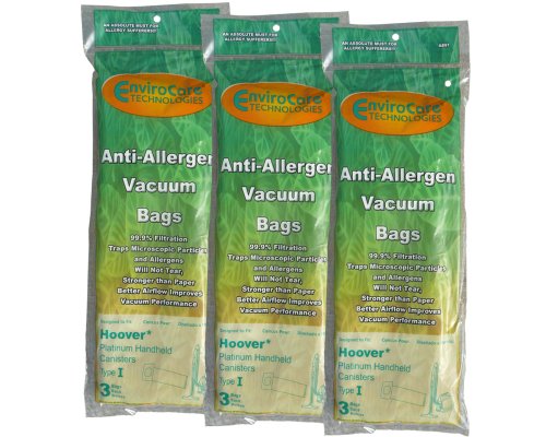 9 Hoover Type I #AH10005 Platinum Canister Vacuum Cleaner Allergen HEPA Bag A891, 985059002, AH10005, SH10000, SH10000RM, UH30010COM, UH30010CCA
