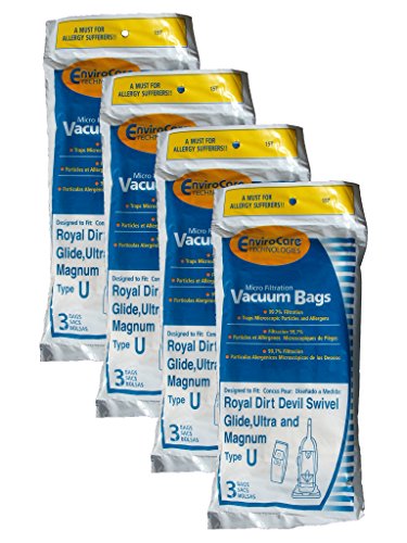 EnviroCare 12 Royal Dirt Devil Type U Upright Vacuum Cleaner Bags 3920047001, 920047, 454745, Hoover 40100526, Sears Upright 50178